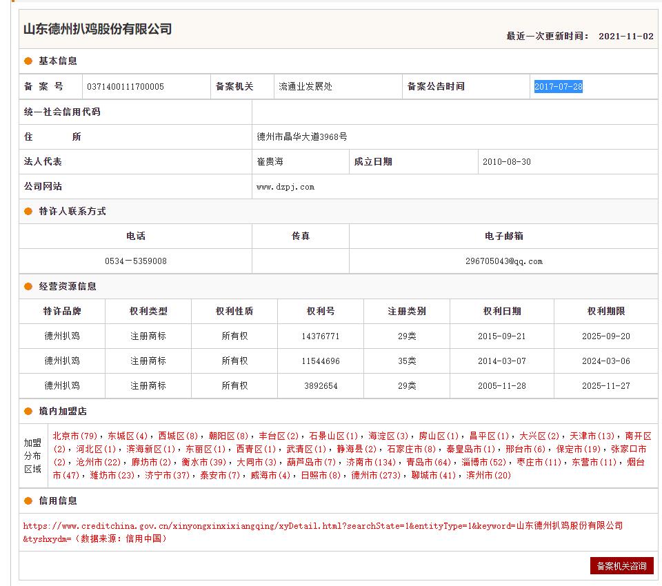 德州扒鸡 品牌资料详情