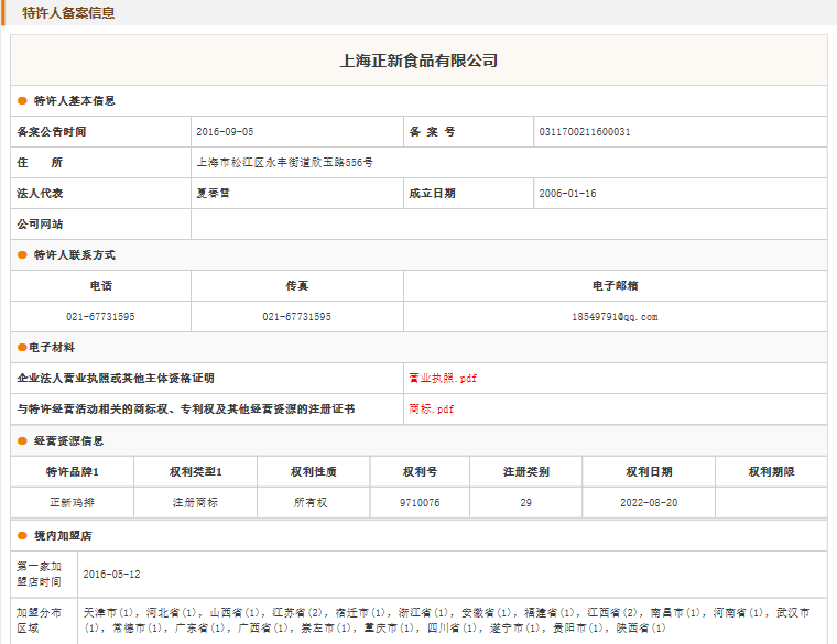 正新鸡排 品牌资料详情