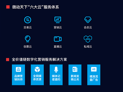 微动天下成立于2012年,是一家拥有丰富的企业服务经验的高新技术企业。产品服务覆盖直播、新零售电商、服装、美业、生活、游戏、旅游、社交、教育等30多种行业领域,服务超过180万企业商家用户,业务遍布全国26个省市,拥有400家经销代理商。核心业务围绕标准化的SaaS工具、运营、营销等业务延展至短视频、直播电商等个性化服务领域,实现SAAS服务、新零售电商、新流量平台运营、精准营销推广的全域解决方案。帮助企业加速数字化转型升级,成为企业信赖的数字商业合作伙伴。