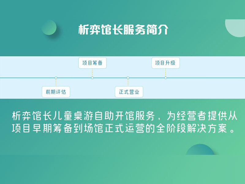 析弈儿童桌游自助开馆服务,为你提供从项目早期筹备到场馆正式运营的全阶段解决方案,助力打造属于自己的儿童桌游馆。