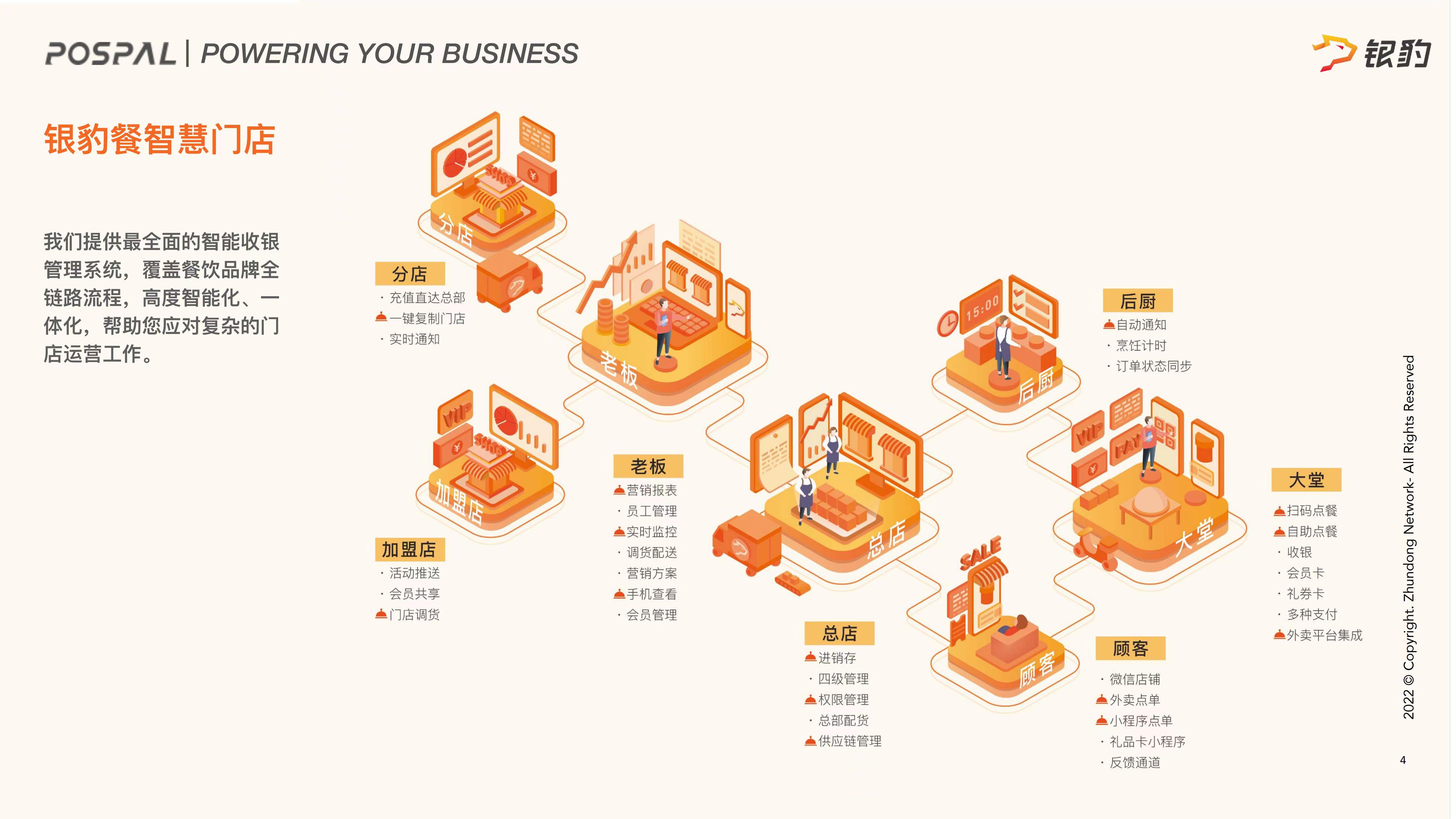 产品满足电脑收银,手机收银,平板收银,自助收银和无人收银5大应用场景,为餐饮行业提供外卖小程序,AI收银,自助点餐,智能厨打等智慧门店管理产品及服务。