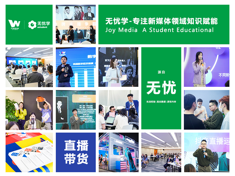 广州市忧等生教育科技有限公司拥有专业的短视频和电商人才组成的研发团队,并由一线实战经验丰富的导师亲自研发课程和授课,基于无忧传媒大量的IP孵化及直播电商的真实案例和成功经验,无忧学致力于打造新媒体职业教育领域系统化、专业化、规范化、标准化的教培体系和服务体系,培养更多更优秀的电商主播、短视频摄像、短视频剪辑、电商运营、数据分析等新媒体全岗位的职业人才,坚持“产、教、研、学、创”融合,培育人才,服务企业,赋能社会。
