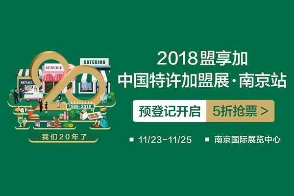 盟享加中国特许加盟展2018年的最后一站,我们选择了——南京!作为今年的收官站,南京站将带来哪些惊喜?快来看看吧!预登记购票,还有早鸟5折特惠哦!2018-09-1225810